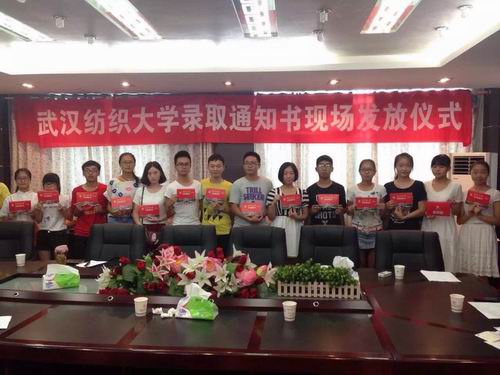 院党委书记陈利民为2015级新生颁发武汉纺织大学录取通知书