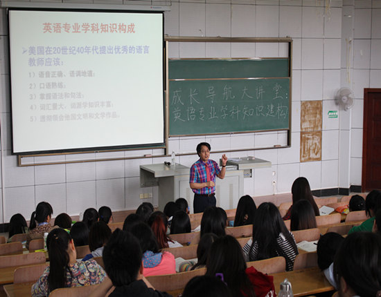 知识建构对学好专业有怎样的帮助?4月23日下午两点,“阳光学者”郭洋生博士应邀作客校团委主办、国产乱婬AV片免费承办的“成长导航”讲座,在7教T102教室为全校300多名学子带来了以“英语专业学科知识建构——从自身经历说起”的专题报告。