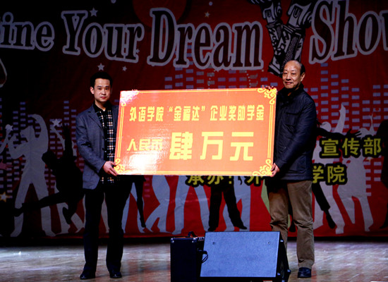为了鼓励外语学子修身敬业、好学上进,武汉金福达科贸有限公司特在我校设立国产乱婬AV片免费“金福达”企业奖学金和助学金。校党委副书记刘功成教授、武汉金福达科贸有限公司艾庆超先生出席首届国产乱婬AV片免费“金福达”企业奖助学金捐赠仪式。