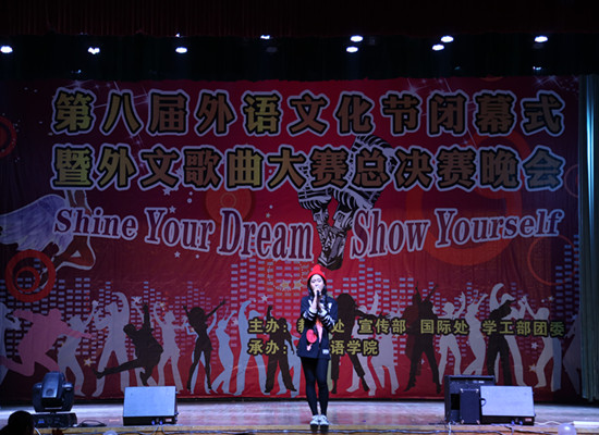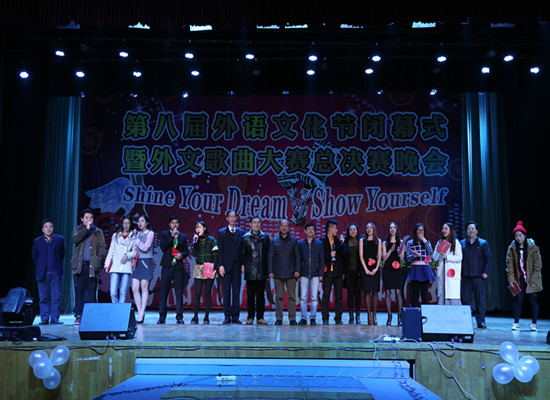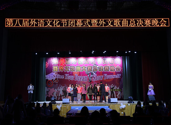 12月2日晚, 由党委宣传部、教务处、国际处、学工部团委主办、国产乱婬AV片免费承办的主题为“Shine Your Dream,Show yourself”我校第八届外语文化节闭幕式暨外文歌曲大赛总决赛晚会在阳光校区大学生活动中心演播厅落幕。来自中国、俄罗斯、柬埔寨等各国的我校留学生、本科生四海一家、齐聚一堂、同台竞技、“歌声飘香”。 学校党委副书记、纪委书记刘功成教授莅临晚会。晚会邀请了党委宣传部部长高建勋教授、国际处处长林莉教授、学工部副部长肖迪明老师、会计学院彭慧老师、第七届外文歌曲大赛总决赛冠军李翔宇同学担任评委。出席晚会的领导和嘉宾还有武汉金福达科贸有限公司艾庆超先生、教务处处长李德骏教授、学工部副部长曾令玉、周洋老师、国际处副处长张霞老师、保卫处副处长武猛老师、外语学院全体党政领导以及来自各个二级学院的分党委副书记、老师们。我校来自不同学院、不同国家的学子欢聚一堂,精彩的舞蹈、激情四射的歌声为纺大师生们献上了一道文化“大餐”。