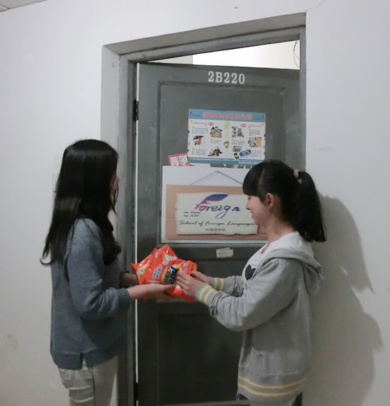 “每个星期抽查一次,记录卫生分数,再结合学风安全每周检查的分数,每月进行一次汇总。每月结合安全学风卫生情况评选出的文明宿舍每人奖励一袋洗衣粉;安全学风卫生情况最差的宿舍集体成员恐怕要被叫去语音室打扫卫生。”这是外语学院宿舍管理委员会制定试行期间文明宿舍评选制度中的一条。