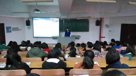 北京外企服务集团“优势”项目部薛梦雪老师就申请流程、学员要求、学员岗位、薪资待遇等方面对暑假赴美实践“优势”项目作了具体的介绍。在现场互动环节,同学们就自己感兴趣的问题,与薛老师进行交流。