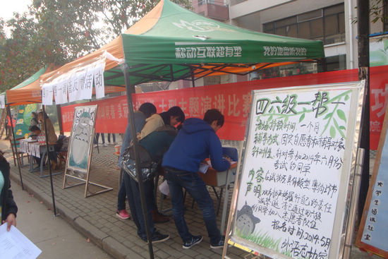 据悉,今年5月份活动刚开始便有近260人报名,其中志愿辅导者110名,备考者150名,可基本满足一对一的辅导要求。随后,是对备考者和志愿者进行调查,了解备考者的弱项,志愿者的强项来进行分组,从而有计划的进行重点辅导。分组之后,由志愿者和备考者自己商定辅导时间、地点以及频次。但统一要求每周辅导不少于2次。正式开始辅导之前,英语志愿者服务基地还对四六级“一帮一”志愿者进行集中培训。