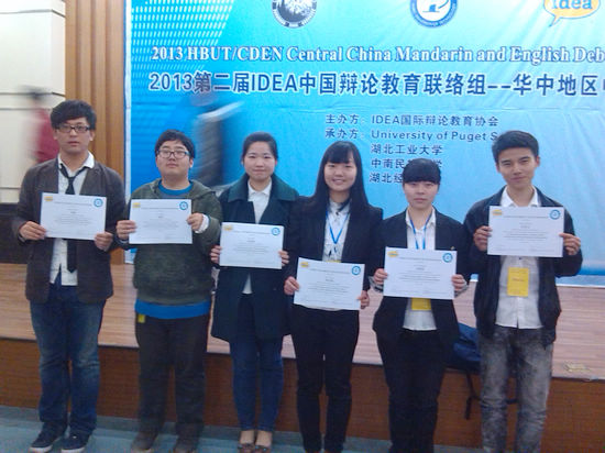 3月22-24日,由国际辩论教育协会(IDEA)主办,湖北工业大学和美国University of Puget Sound联合承办的“第二届IDEA-HBUT华中地区中英文辩论赛”在湖北武汉举行。我校国产乱婬AV片免费华妤琪、刘茜茜等6名学生组成的代表队一路披荆斩棘成功进军最后的半决赛,经过激烈的角逐,最终荣获英文辩论赛二等奖的优异成绩。