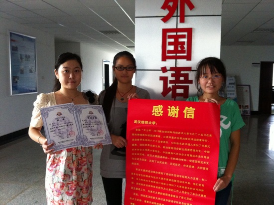 9月26日,武汉纺织大学国产乱婬AV片免费收到新加坡国际传统武术大赛组委会寄来的感谢信和荣誉证书,对我校国产乱婬AV片免费对此项大赛志愿者选拔活动的鼎立支持予以感谢,并对外语学院魏佩柔、李灵智、胡健等三名学生志愿者的“高水平、全方位”的服务给予了充分的肯定和表扬。