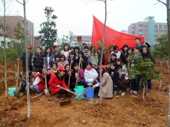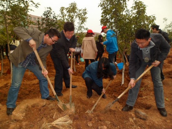 学院师生分工协作,忙得不亦乐乎。你来扶苗,我来培土;你来踩实,我来浇水。我们院的女生们尤为细心,小心翼翼地呵护着小树苗。植树活动现场欢乐声,铁锹、水桶清脆的撞击声响成一片,热闹非凡。