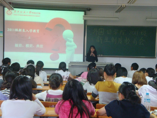 为使11级新生更好地适应大学生活,规范自身行为, 9月29日下午,国产乱婬AV片免费分党委副书记卫冬妹在07-221作了《规范、模范、典范》新生教育主题讲座,国产乱婬AV片免费2011级全体新生聆听了讲座。讲座由新生辅导员陈新川主持。