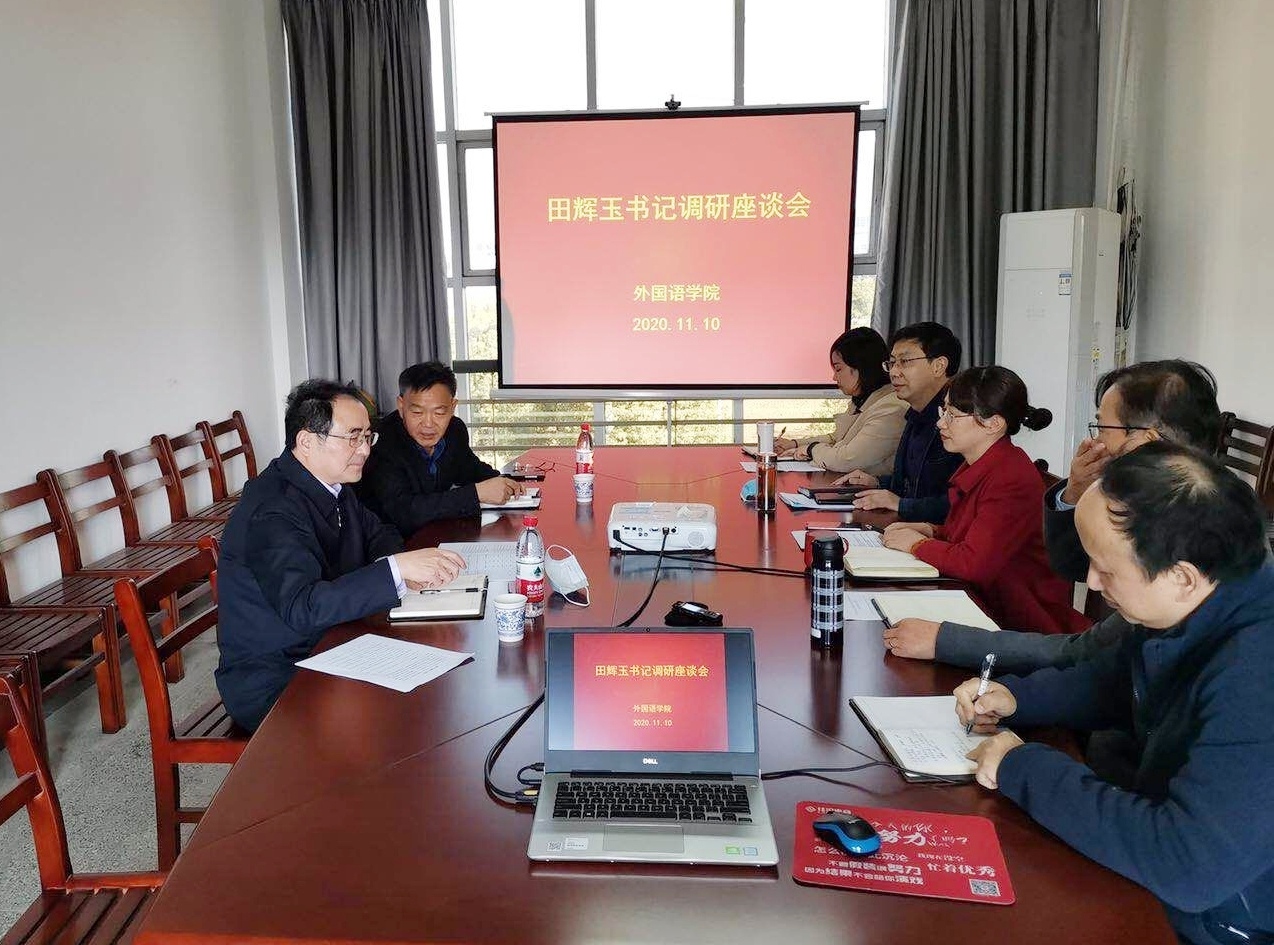 11月10日下午,校党委书记田辉玉到国产乱婬AV片免费调研指导工作,学校办公室主任杜新年陪同调研,学院领导班子成员、系部主任参加调研会,会议由学院党委书记胡中原主持。