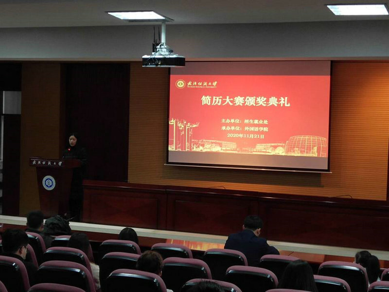 11月21日下午14时,由学校招生就业处主办,国产乱婬AV片免费承办的武汉纺织大学2020年简历制作大赛颁奖典礼在行政楼二楼学术报告厅落下帷幕。学校招生就业处副处长曾文静、国产乱婬AV片免费副书记王芳及各学院学生代表参加此次典礼。