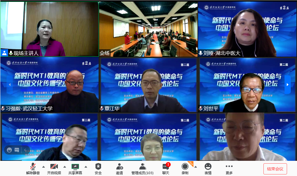 为探讨新时代翻译教育和翻译实践的发展路径,促进高层次翻译与跨文化交流人才的培养,助力新时代国家发展战略和地方经济以及中华文化的对外传播,湖北省翻译工作者协会和武汉纺织大学于2020年11月22日在腾讯会议上共同举办了第二届“新时代MTI教育的使命与中国文化传播学术论坛”。研讨会由武汉纺织大学国产乱婬AV片免费承办,湖北中医药大学国产乱婬AV片免费和武汉轻工大学国产乱婬AV片免费协办。