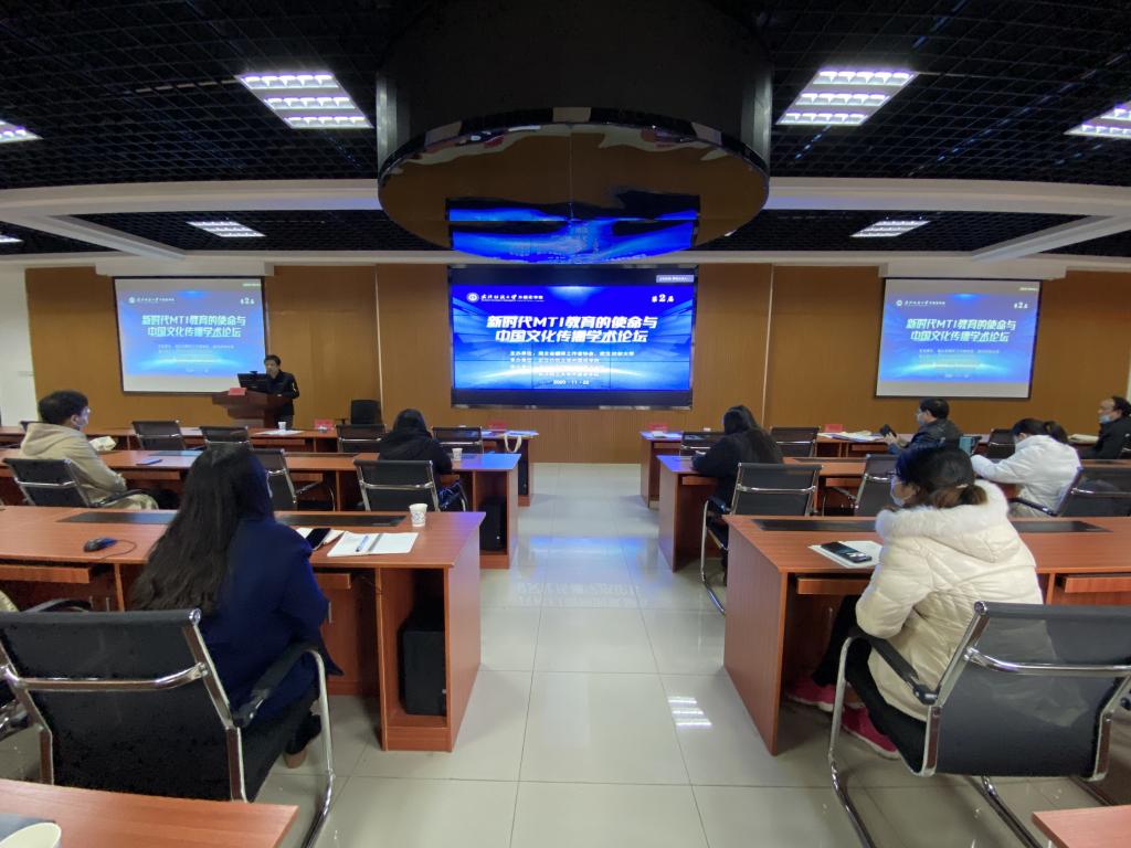广东外语外贸大学高级翻译学院院长李瑞林教授、武汉大学外国语言文学学院博士生导师刘军平教授、东华大学外语学院院长赵晓临教授、华中农业大学国产乱婬AV片免费副院长覃江华博士、武汉东湖学院外语学院院长刘世平教授,以及来自湖北中医药大学、武汉轻工大学和武汉纺织大学国产乱婬AV片免费的多名师生参加了论坛。与会学者围绕“新时代MTI教育的使命与中国文化传播”的主题展开广泛深入的研讨。武汉纺织大学党委常委、副校长黄运平在开幕式上致辞,我校国产乱婬AV片免费院长谭燕保与其他协办方院长共同主持了本届学术论坛,教务处处长何畏在闭幕式上作了总结讲话。