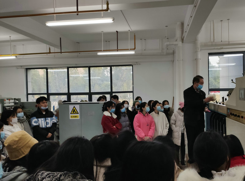 12月10日上午,《纺织英语》任课教师郑亚娟组织18级英语专业和商务英语专业学生,以及20级MTI学生,在我校实训北楼参观了纺织实验室的纺纱设备、织造设备、针织设备和非织造设备,实验室安排了四位老师分别进行现场讲解和演示,使学生深入了解了纺纱基本原理、织造基本原理、针织基本原理和非织造基本原理。学生表现出极大的好奇心和兴趣,个个跃跃欲试,有学生在织样机上亲自动手进行穿经引纬,尝试手工织布;还有学生在针织横机上织出了一条小围巾。