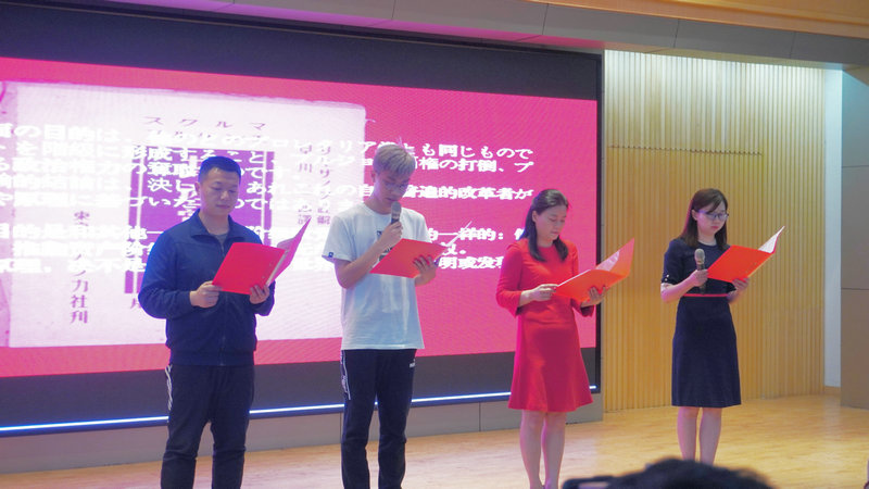 展播间隙,国产乱婬AV片免费师生登台表演了中英法日四国语言诵读《共产党宣言》(节选),全场报以热烈的掌声。