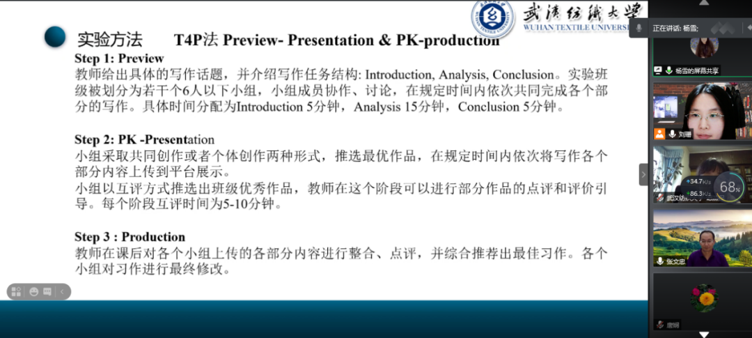 武汉纺织大学国产乱婬AV片免费院长谭燕保教授进行了总结。她感谢张教授及南开大学团队创立了赋权增能公众号,为老师们提供了小妙招学习和交流的平台。她希望武汉纺织大学赋权增能团队的小妙招验证活动能继续推进,学院将对成果的推广和发表予以支持,助推教研成果服务外语教学,服务社会。