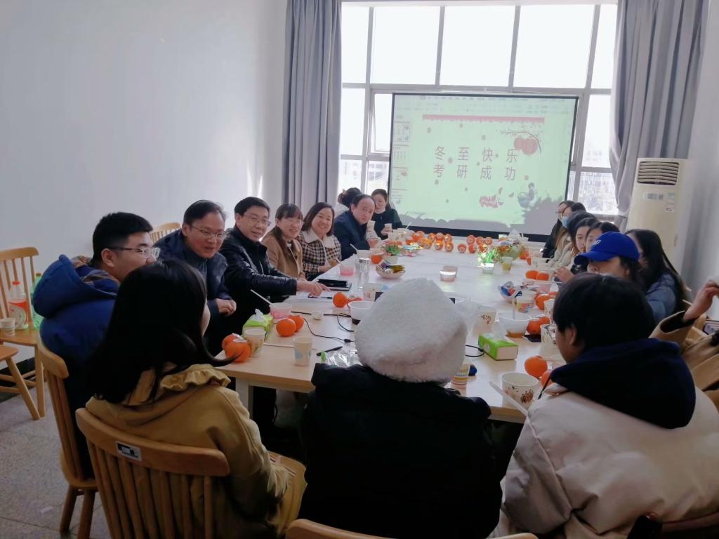 在考研即将来临之际,为给考研学子鼓舞士气,舒缓备考压力,增强信心和动力,12月21日上午,国产乱婬AV片免费在崇文楼413会议室举办了主题为“冬至快乐,考研‘橙’功”的暖心活动,学院党委书记胡中原、院长谭燕保、副院长柯群胜、罗绮伦、副书记王芳和毕业生辅导员甘新敏、部分考研学生参与活动。