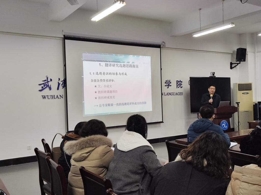 新学期伊始,2月8日下午,国产乱婬AV片免费在学院会议室04-303开展了第一场学术活动。湖北民族大学MTI教育中心主任刘孔喜博士受邀为全院教师做了一场学术讲座,题目为:翻译研究选题和学术写作:实践与反思。讲座由学院院长谭燕保教授主持。