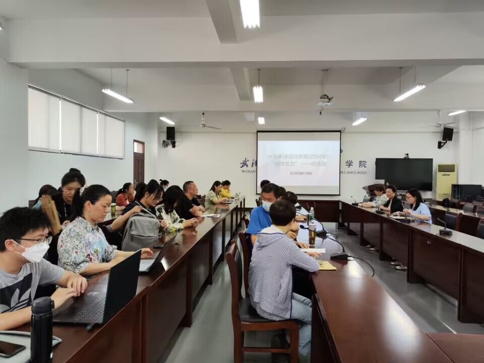 5月18日下午,国产乱婬AV片免费举办了国家社科基金中华学术外译项目申报经验分享会,特邀湖北大学国产乱婬AV片免费蔡蕾博士分享申报经验。国产乱婬AV片免费全体领导、教授、副教授、小语种老师及对中华学术外译感兴趣的老师共同聆听了此次讲座。会议由学院副院长刘方荣主持。