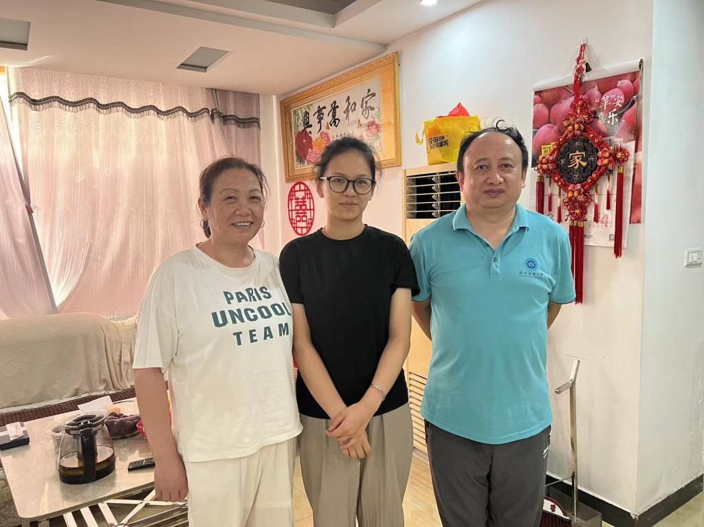 曾钰璇和母亲知道我们要来,很早就在巷口等着。迎我们进门,一尘不染,清朗的家风萦绕着简单的陈设,连暑气都退却了不少。曾钰璇暑期在家备考研究生,各项准备按部就班,有条不紊,对复习的进度缺乏经验,会有些“患得患失”的紧迫感。罗绮伦副院长与曾钰璇交流了相关专业课程备考的技巧,他认为,文学类专业的备考精读一遍胜于泛读三遍,除了规定书目的学习,也应该重视文学素养的养成,深厚的积累有助于整体、稳定地发挥,也在复试中会更占优势。我们鼓励曾钰璇充分利用假期,珍惜时间,保持专注力,不为外部所干扰,把握好自身的节奏,大胆追梦。同时,要和今年上岸的学姐积极交流,在前人的经验中摸索适合自己的最佳方案,早日圆梦。