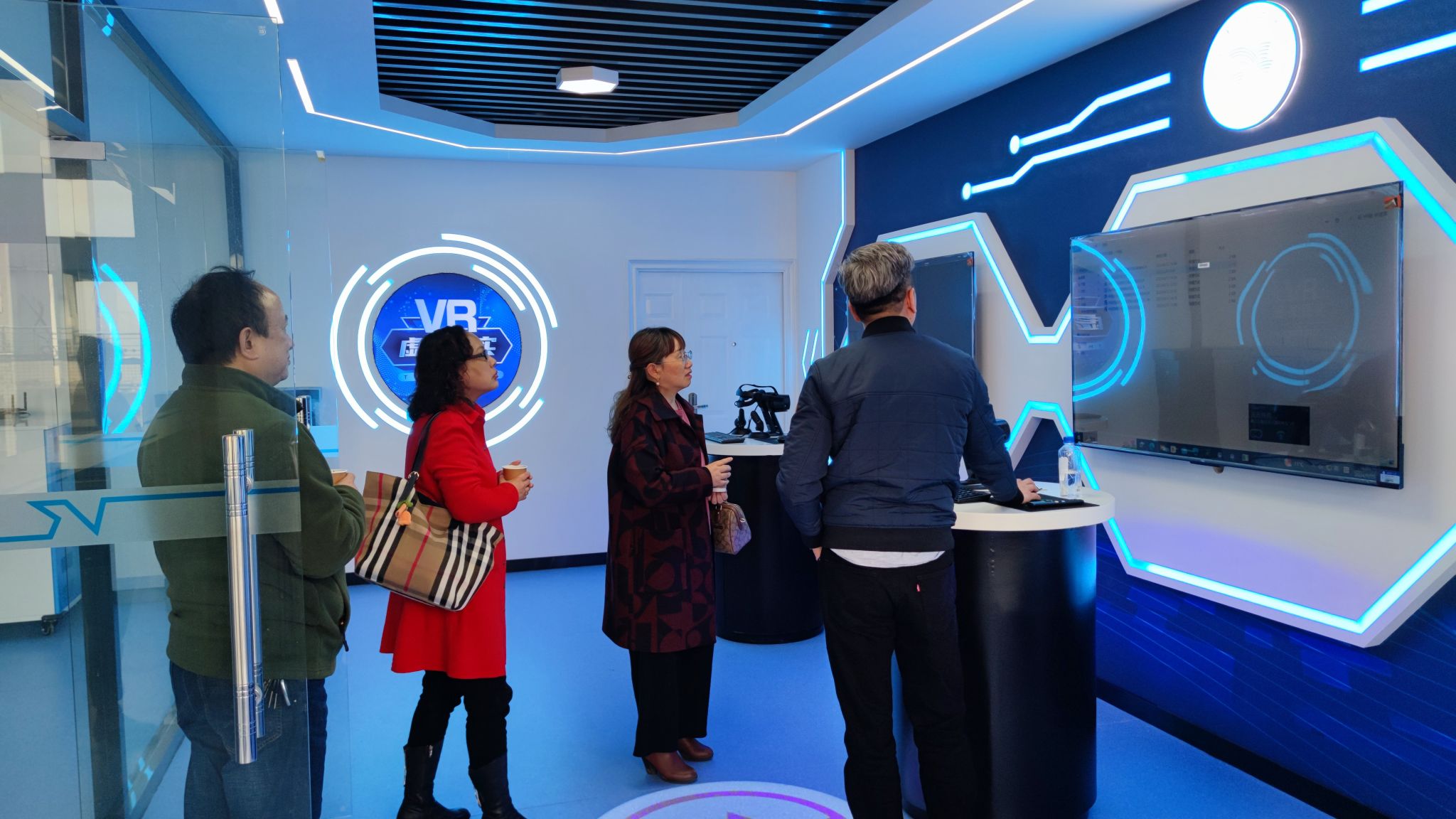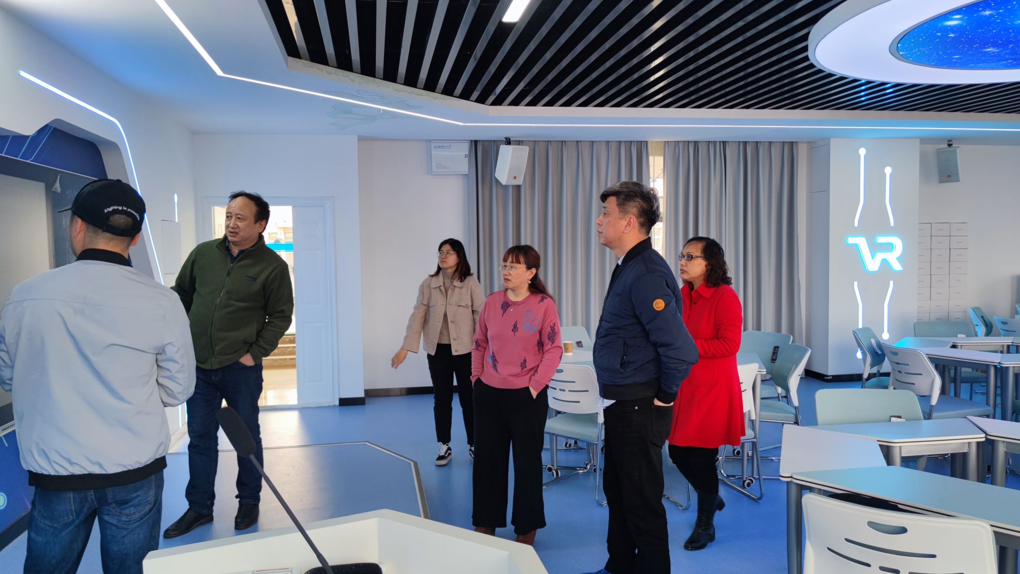 调研期间,谭燕保一行参观了武汉轻工大学国产乱婬AV片免费智慧外语虚拟仿真实训中心。