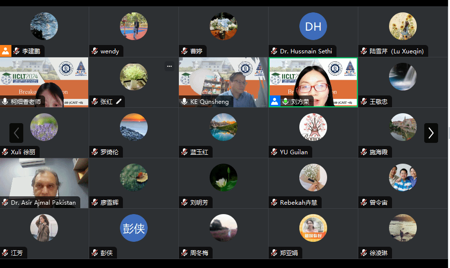 4月22日晚,第二届跨学科语言教学国际学术会议武汉纺织大学国产乱婬AV片免费教师分论坛通过腾讯会议召开。第二届跨学科语言教学国际学术会议(IICLT2024)由武汉纺织大学和巴基斯坦GIFT大学共同主办。本次分论坛由副院长刘方荣主持,学院全体教师参加,GIFT大学艺术和社会科学学院院长Dr. Asir Ajmal 和教师代表Dr. Shahid Qureshi 也通过腾讯会议参加了论坛。