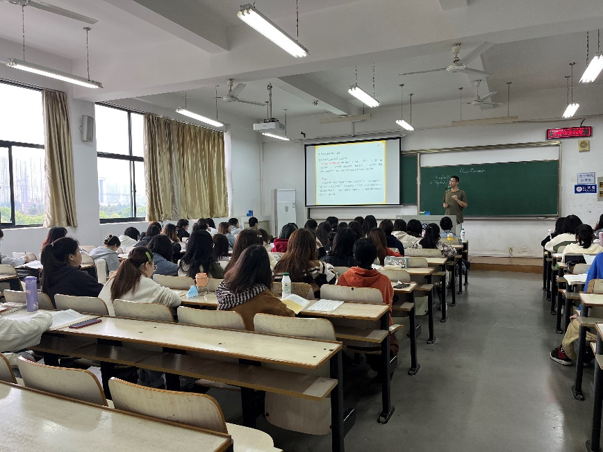 9:45分,阳光校区03-309教室,吴定祥老师,以及商英12001,12002共计67名学生已早早坐到教室,精神饱满地做好了课前准备。本次课程的主要内容为如何设计调查问卷。吴老师首先从问卷的定义、特征入手,调动起学生的求知欲;然后结合课文讲解、课外知识补充以及问卷实例分析,透彻、生动地讲解了调查问卷问题的类别、功能、设计原则等。整个课堂,学生们听课专注度很高、师生互动好,课堂气氛好,教学收效明显。