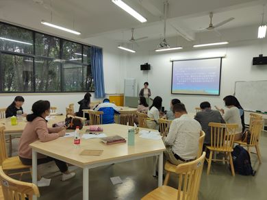 在交流环节,与会教师们首先充分肯定了两位老师的教学设计、学科素养、课程思政元素的融入和思辨能力的培养,然后围绕本学期的教学和导师指导工作展开了交流。MTI教育中心主任刘珊副教授进行了总结,反馈了上周学生座谈会的评教情况,鼓励导师和老师们追求培养模式和教学模式创新,切实提高MTI人才培养质量。