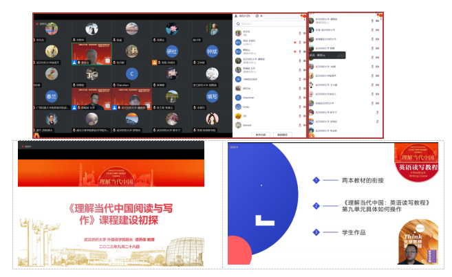 9月28日,由《理解当代中国英语读写教程》副主编夏登山教授主持的高等学校《理解当代中国:英语读写教程》虚拟教研室第九期教研活动在云端成功举办。我校国产乱婬AV片免费院长谭燕保教授应邀作主旨发言,就相关课程建设推进情况进行了介绍、分享。各高校百余名语言类教师参加与本次教研活动。
