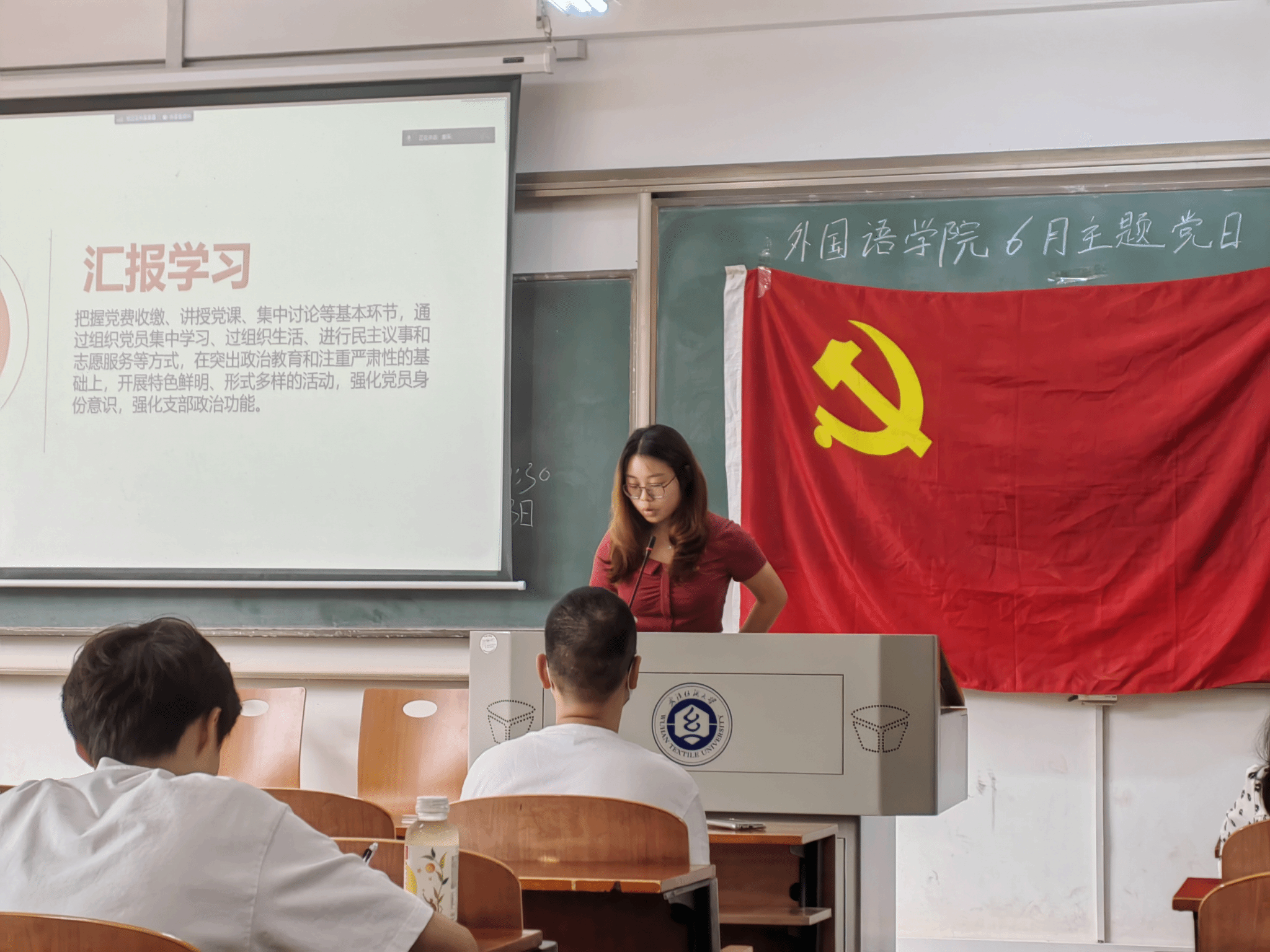 为加强党员队伍建设,提高党员的党性修养和服务意识,6月22日,国产乱婬AV片免费英语学生党支部、商务英语学生党支部在崇志楼110教室开展主题党日活动,英语、商务英语学生支部全体党员参加此次活动,活动由英语学生支部副书记宋美琪主持。