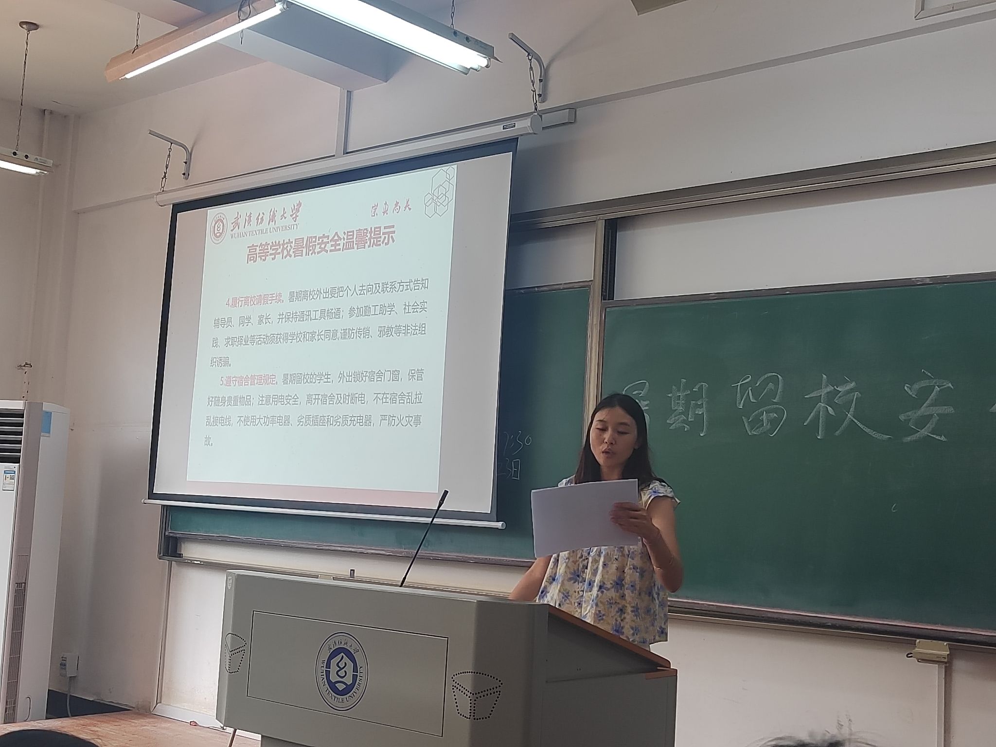 首先,辅导员甘新敏带领同学们学习了暑期安全责任告知书,并暑期留校学生安全注意事项,强调了暑假管理的重要性,并进一步要求同学们明确暑期留校的有关要求,增强安全意识。强调学院秉承“安全第一”理念,会严格落实学校暑期留校学生盖章安排,进行不定期安全排查,提醒同学们一定要合理规划时间,制定学习计划,做到学有所获,学有所成;嘱咐留校同学做到自觉自警自律,强化自主管理,注意劳逸结合,适当舒缓压力。提醒同学们一定要注意宿舍消防安全、人身、财产安全, 加强朋辈互助意识。