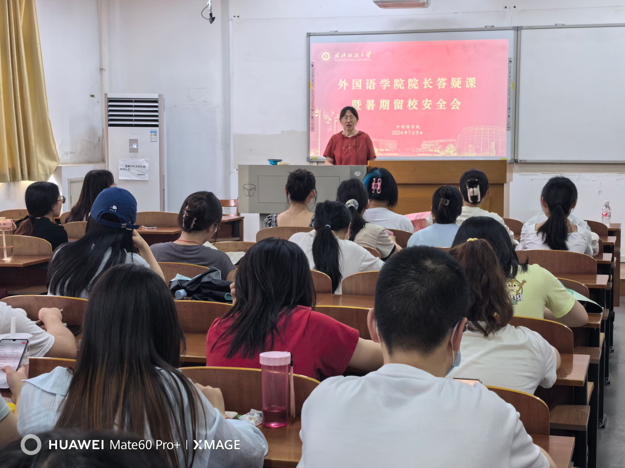 为进一步夯实学生安全稳定工作基础,做好暑期留校学生管理与服务工作,结合学校相关要求,国产乱婬AV片免费于7月9日,在崇文楼101教室召开了院长答疑课暨暑期留校学生安全会议,国产乱婬AV片免费院长谭燕保教授、党委副书记彭阳慈航、辅导员甘新敏以及全体暑期留校学生参加会议 。