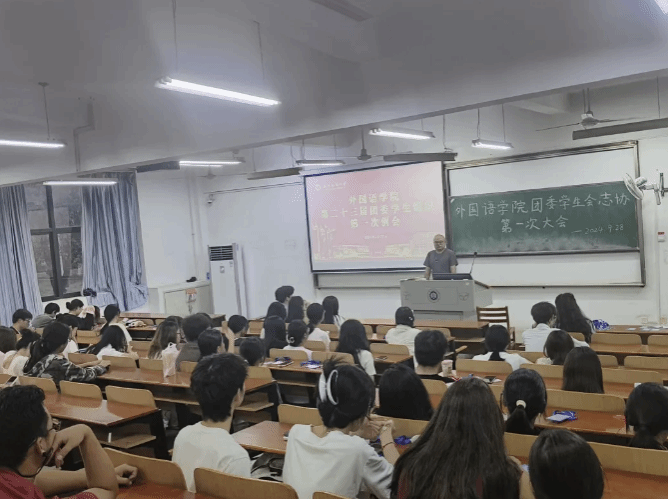 学院学生会主席刘小戌介绍了本学期将组织开展的重点活动。如太极拳学习、汇演演出等,由文体部进行组织与带领。外语文化节作为学院传统节日,配音大赛等趣味活动也将在学生会的带领下组织开展。