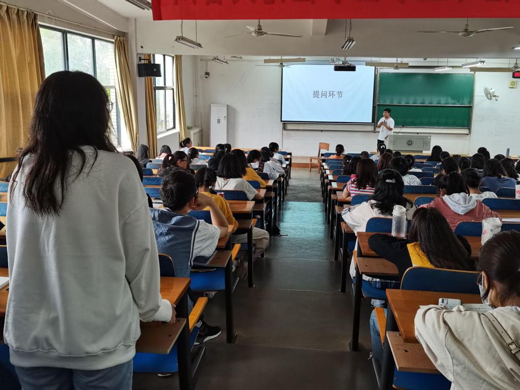 在提问环节中,蔡文斌同学就“双学位”、“取得好成绩的诀窍”、“如何利用课余时间”、“如何提升笔译能力”等问题,为新生们作了切实可行性的回答,使大家对未来的目标有了更深刻的认识。