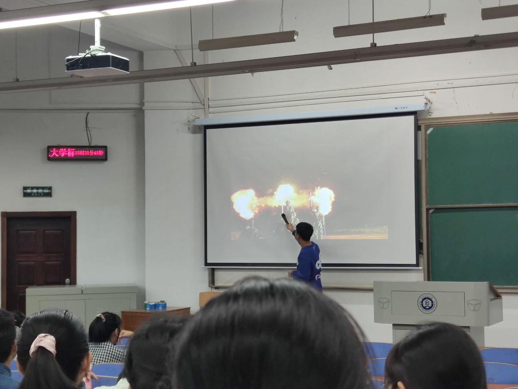 教育由浅入深,于天伦同学从最近的“穿和服女子军舰旁拍照”事件为引,到让新生思考为何我们生活逐渐向小康,直至追溯到先辈们的峥嵘岁月,让新生们明白了国家之重,爱国之责的道理。
