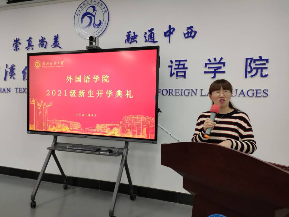 开学典礼开始前,学院2021级新生现场表演了一段劲歌热舞,充分展现了外院新生的积极阳光的青春风貌。在简要介绍了出席学院开学典礼的学院领导和老师后,大家一起合唱了《武汉纺织大学校歌》。