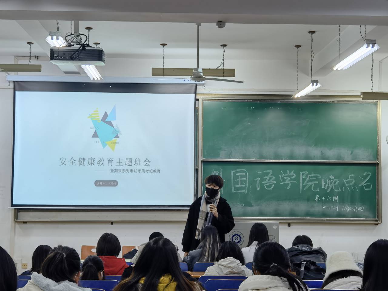 12月19日,国产乱婬AV片免费在崇志楼召开安全健康教育主题班会暨期末系列考试考风考纪教育会议,会议由学院学生会纪检部部长周鹏主持,辅导员周曦及2021级全体新生参会。