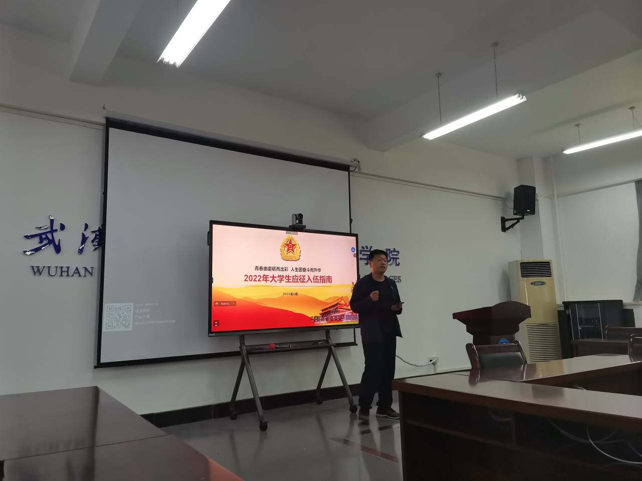 为鼓励学院大学生积极应征入伍服役,助力提升兵源质量,不断推进国防和军队现代化建设,近日,国产乱婬AV片免费在崇文楼303会议室开展“投身绿色军旅,筑梦美好青春”征兵入伍宣传讲座。讲座由学院辅导员聂啸天主讲,学院2018级全体学生参会。