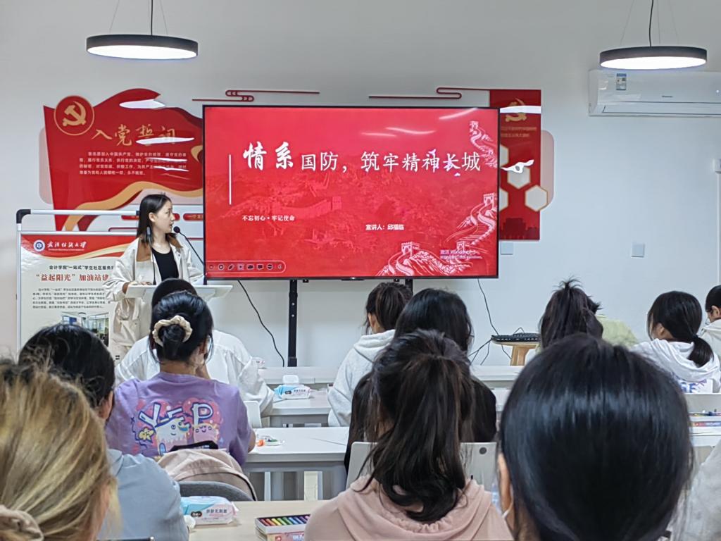 在会计学院“益起阳光”加油站、化工学院“一站式”学生成长服务站、计算机学院“1024学生成长服务站”,宣讲团成员邱福临和张思思围绕我国国防建设、国防教育、国际局势、青年斗志四个方面进行讲解。张思思用中英文向计算机学院的同学展示了我国近年来在军事方面取得的重大成就,并分析了俄乌战争、全球疫情、大国地缘竞争等国际局势问题,引导同学们正确认识国内国际形势,正确看待中国特色和国际比较。邱福临引用“海天卫士”王伟、戍边英雄陈祥榕的具体事例,号召青年学子要增强国防意识、民族责任感和使命感,积极参军入伍,报效祖国。