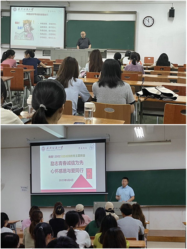 根据学校及学院相关工作安排,6月4日晚,学院全体辅导员、班主任通过线下方式,深入各班级组织召开晚点名,“励志青春诚信为先 心怀感恩与爱同行”诚信教育主题班会,学院全体本科生、研究生参加班会。