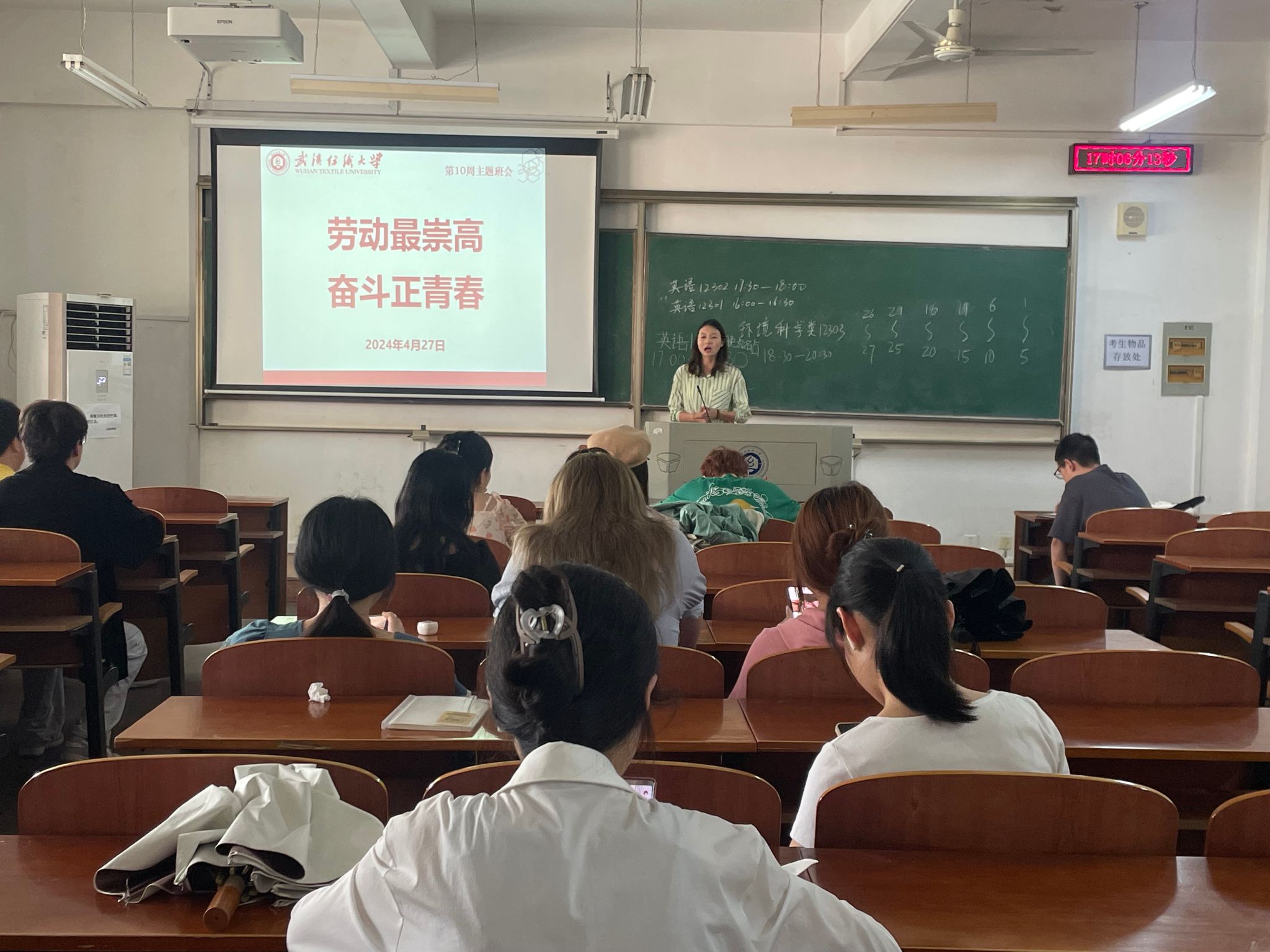 此外,班会还进行了五一假期安全提醒。班主任强调,同学们在享受假期的同时,要注意安全,遵守法律法规,合理安排时间,做到劳逸结合,确保度过一个安全、充实、愉快的假期。